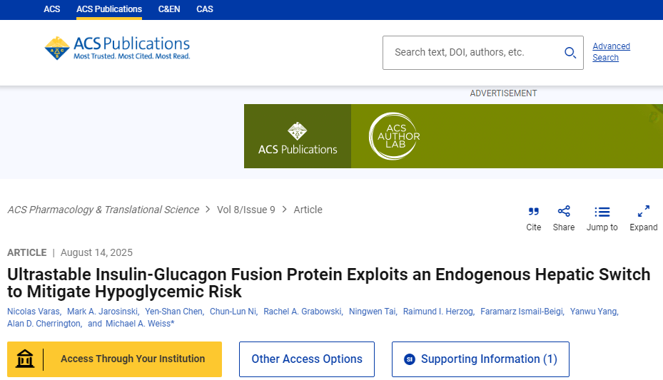 ACS Pharmacol & Transl Sci:糖尿病治疗迎来智能升级!新型“双激素蛋白”实现血糖自主调节